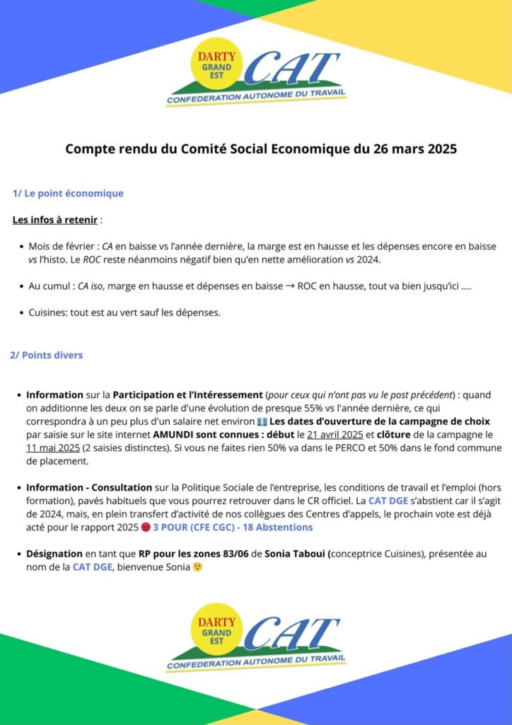Compte rendu du Comité Social Economique du 26 mars 2025