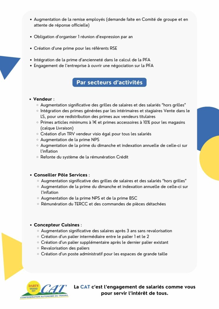 Parallèlement, notre plateforme propose des avancées adaptées aux spécificités de chaque activité. Qu’il s’agisse des métiers de la vente, des services, de la logistique, de la relation client ou des fonctions support, nos propositions répondent aux réalités professionnelles vécues au quotidien. Elles visent à mieux valoriser les compétences, à rendre les parcours plus lisibles et à assurer une reconnaissance équitable des responsabilités.