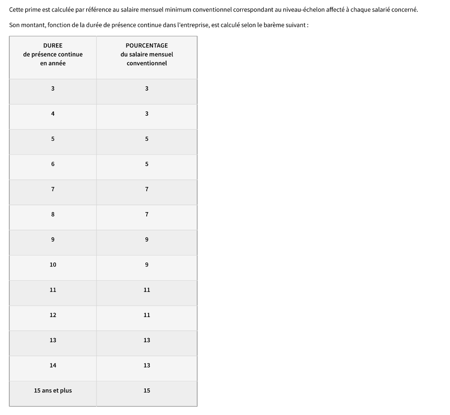 Prime d’ancienneté Conventionnelle